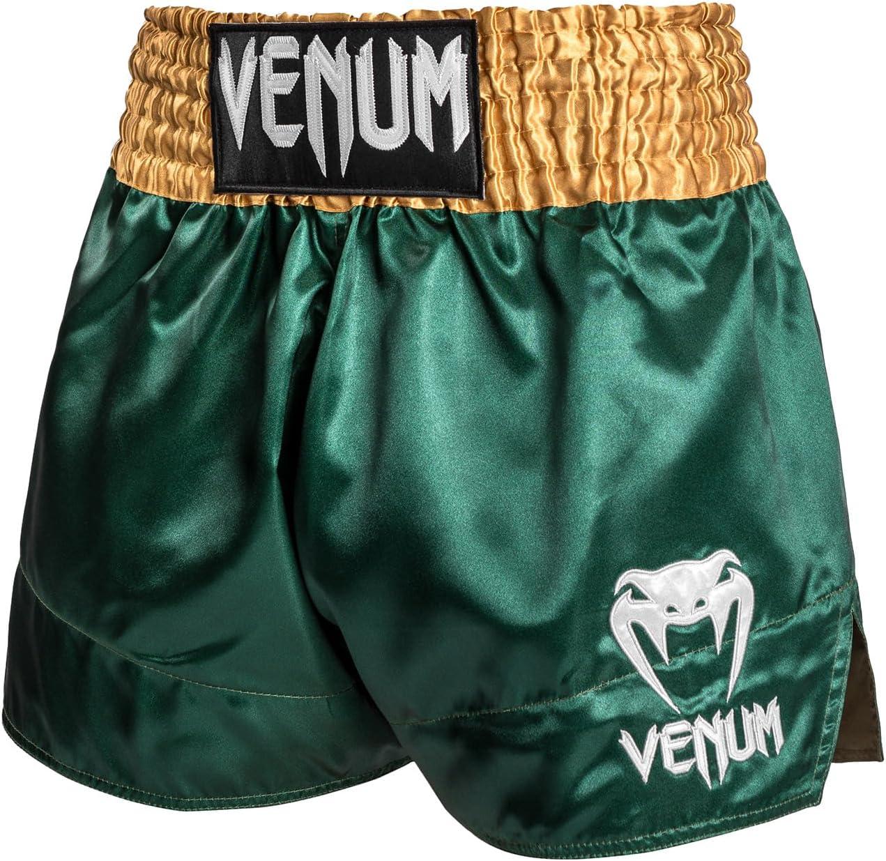 Venum Classic Muay Thai Shorts are a must-have for all Thai Boxing practitioners looking for shorts with great value! Made in Thailand, these Venum Thai Boxing Shorts have been crafted from a lightweight and flexible polyester to leave you free to move. Side slits will increase your flexibility to help you perfect your footwork. Its wide traditional belt s good support around the waist during the fight. Finally, the Muay Thai Classic shorts boast a sleek design, with elegant finishes.