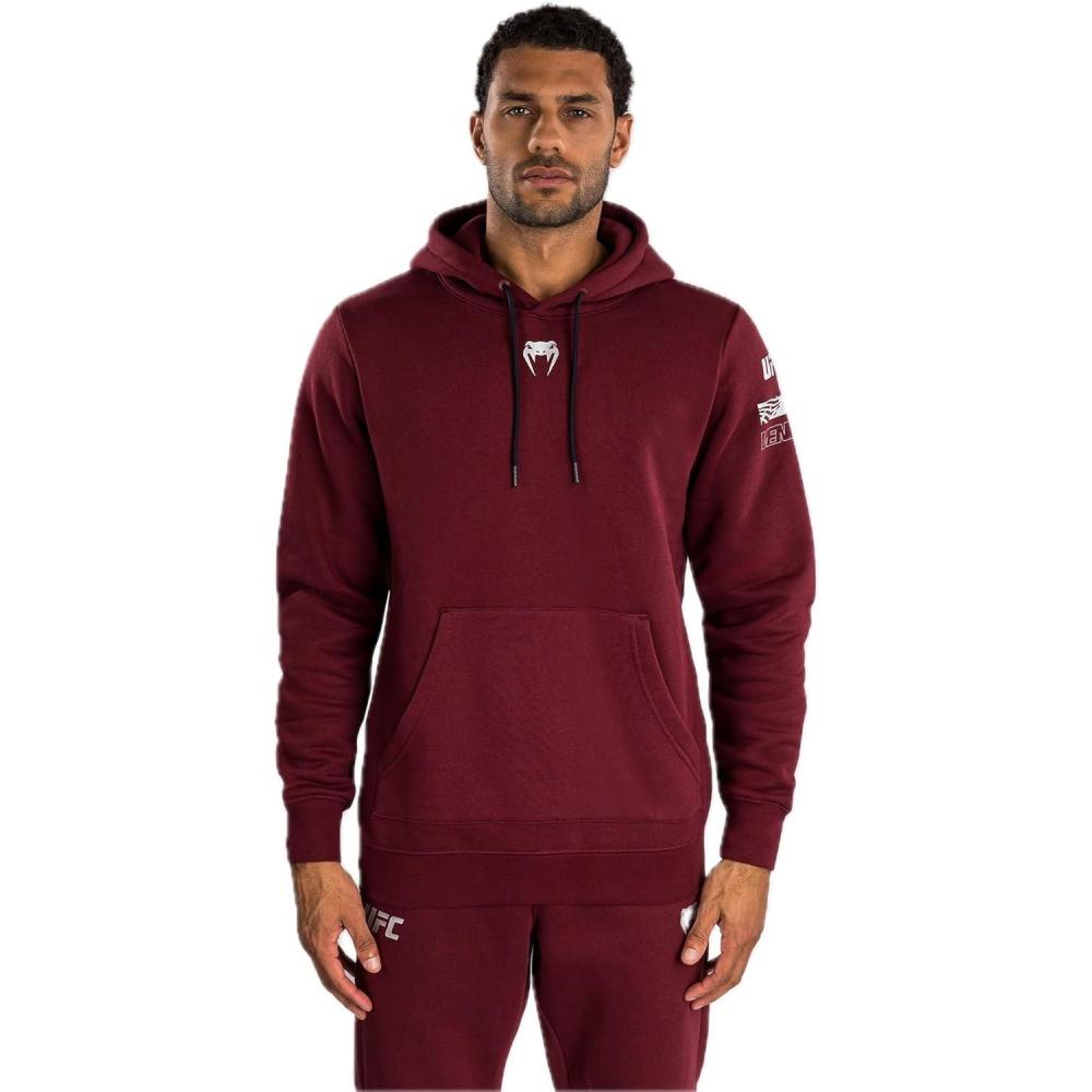 UFC Zenith by Venum represents the apex of performance innovation. This advanced gear is designed with next-generation materials that optimize function, enabling athletes to elevate their potential, and achieve maximum performance both in and out of the Octagon. The Men’s UFC Zenith by Venum Fight Week Pullover Hoodie features branding at the chest, left arm and back of the right shoulder. The kangaroo style front pocket and drawstring hood add finish to this premium hoodie.