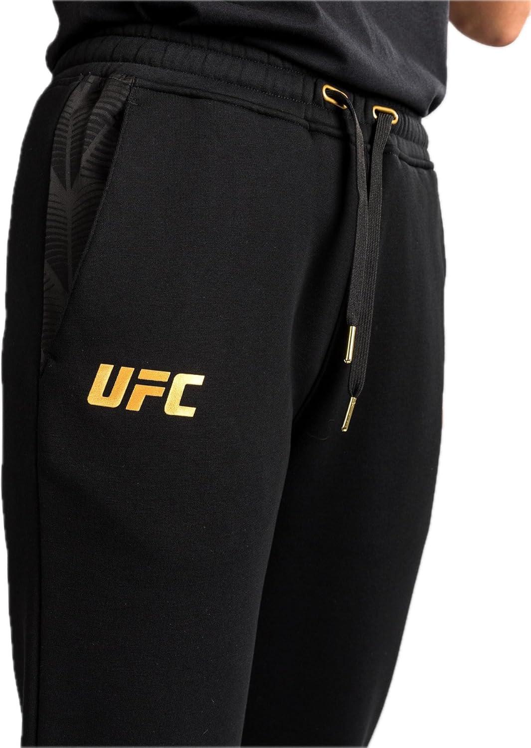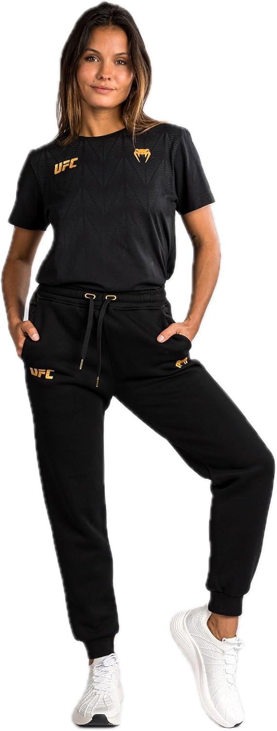 UFC Zenith by Venum represents the apex of performance innovation. This advanced gear is designed with next-generation materials and optimized functionality, enabling athletes to exceed physical boundaries, elevate their potential, and achieve maximum performance both in and out of the Octagon. Inspired by the outfits worn by UFC athletes, UFC Zenith by Venum Replica collection is ideal for fans and fighters alike. The Women’s UFC Zenith by Venum Replica Pant features open side pockets and a drawstring waistband for tailored comfort. These lifestyle-inspired pants offer optimal freedom of movement for when you’re on the move. White Venum and UFC logo detailing at the hips add finish to these casual sweatpants. This black/gold colorway is reserved for UFC champions.